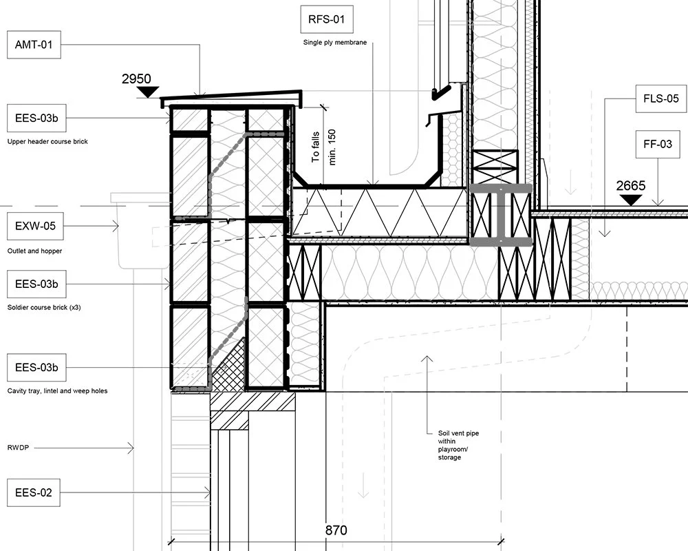 This includes coordinated drawings, specifications, and precise technical details to ensure both quality and compliance. Construction details provide the necessary information for accurate quotes from builders during the tender process, while also setting clear expectations for the quality of construction. The technical design package is also submitted to Building Control to demonstrate compliance with Building Regulations.